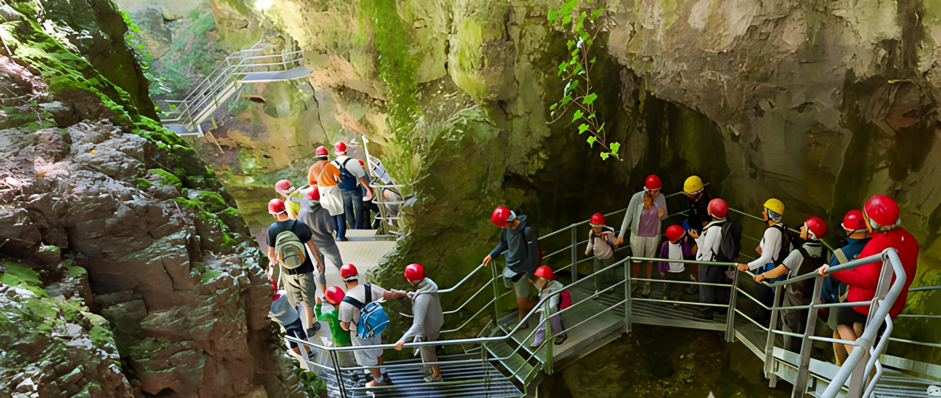 Dal 2001 esiste un facile e suggestivo percorso all’interno del burrone, attrezzato con passerelle, ponti sospesi e scale. Passando tra le pareti verticali, sopra alle acque gorgheggianti, scoprirete cascate, stalattiti, stalagmiti e fossili. Il percorso ricopre un dislivello di 145 metri e include 348 gradini.